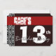 Invitation 13e anniversaire moderne pour lui Rouge Blanc Noir