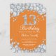 Invitation du 13e anniversaire. Diamant de strass orange et argent. Élégant invitation de Bassorh Anniversaire. Anniversaire enfant. Fille Anniversaire. Jour d'anniversaire. Pour plus de personnalisation, cliquez sur le bouton "Customiser" et utilisez notre outil de conception pour modifier ce modèle.