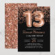 Invitation 13e anniversaire Rose Gold Black Balloons Party