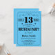 Invitation 13ème Noir et bleu d'invitation d'anniversaire