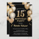 15e anniversaire Ballons de Parties scintillant noir et or Invitation d'anniversaire. Pour plus de personnalisation, cliquez sur le bouton "Customiser" et utilisez notre outil de conception pour modifier ce modèle.