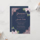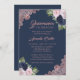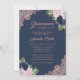Belle invitation à la fête de la quinceañera fleurie florale avec des fleurs roses et bleues et de la dentelle fleurie d'or rose.