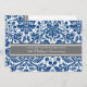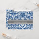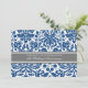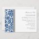 Carton d'invitation pour une fête de 15 ans de mariage en élégant bleu marine foncé, gris et blanc avec un motif classique et chic de damas floral vintage, délicat et contemporain. Personnalisable avec les détails de votre fête.