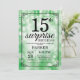 Invitation surprise 15e anniversaire avec des lumières à cordes vertes avec Arrière - plan Parties scintillant vert. Anniversaire Vert. Anniversaire enfant. Invitation Anniversaire garçon ou fille. 13ème 15ème 16ème 18ème 20ème 21ème 30ème 40ème 50ème 60ème 70ème 80ème 90ème 100ème, Tout âge. Pour plus de personnalisation, cliquez sur le bouton "Customiser" et utilisez notre outil de conception pour modifier ce modèle.