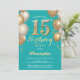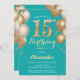 Invitation 15e anniversaire Turquoise et or Balloons Confetti