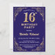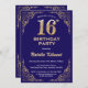 16e anniversaire Marine Bleu et Parties scintillant d'or Cadre Anniversaire Invitation. Pour plus de personnalisation, cliquez sur le bouton "Customiser" et utilisez notre outil de conception pour modifier ce modèle.