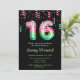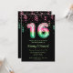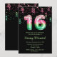 Cette invitation d'anniversaire élégante et glamour porte le numéro 16 en imprimé pastèque avec confettis rose et vert. Le texte combine écriture manuscrite et polices sans serif modernes pour un look élégant et sophistiqué.