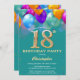 18e anniversaire Turquoise et or couleur ballons et Invitation Confetti. Pour plus de personnalisation, cliquez sur le bouton "Customiser" et utilisez notre outil de conception pour modifier ce modèle.