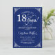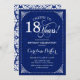 Design élégant vintage bleu marine et blanc avec motif damassé. Caractéristiques de la police de caractères script. À 18 ans! Peut être personnalisé à tout âge! Envoyez-moi un message si vous avez besoin d'une personnalisation supplémentaire.