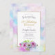 Une surprise florale bleue et rose 18ème anniversaire invitation dîner avec une bordure dorée et pastel peinte en aquarelle.