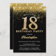 Invitation 18e anniversaire Noir et Parties scintillant d'or