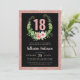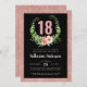 Design chic 18ème ou tout âge avec des éléments de parties scintillant rose vif et une jolie couronne florale contrastée par un arrière - plan noir. Personnalisez avec vous le texte. Assurez-vous de consulter tous les autres objets de cette collection sophistiquée de 18e anniversaire féminine.