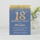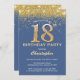 Invitation 18e anniversaire Parties scintillant bleue et or C