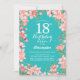 Invitation 18e anniversaire Pink Floral Flowers Turquoise Arr