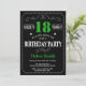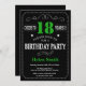 Invitation 18e anniversaire Typographie noire et verte. Tableau de bord. Arrière - plan noir et blanc. Anniversaire adulte. Hommes ou Femmes Anniversaire. Enfants Garçon ou fille Ado Anniversaire adolescent Invitation . 13ème 15ème 16ème 18ème 20ème 21ème 30ème 40ème 50ème 60ème 70ème 80ème 90ème 100ème. N'Importe Quel Âge. Pour plus de personnalisation, cliquez sur le bouton "Customiser" et utilisez notre outil de conception pour modifier ce modèle.