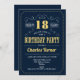 Invitation de fête du 18e anniversaire. Elégant design rétro bleu marine, or et blanc avec police de script. Bravo à 18 ans ! Message-moi si vous avez besoin d'une personnalisation plus poussée.