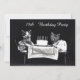 18èmes invitations mignonnes et personnalisées d'anniversaire de coutume pour des femmes. La photographie antique lunatique, drôle, noire et blanche de deux/2 mignons, les chatons adorables s'est habillée dans des vêtements de partie se reposant à une table couverte de nappe blanche et noire avec un gâteau d'anniversaire blanc avec des bougies sur un arrière - plan noir simple. C'est une photographie vintage originale de deux chats attendant pour manger leur gâteau, une invitation parfaite d'anniversaire pour tous les amoureux de les chats. Ce sont amusement, original, uniques, des invitations pour vos dix-huitième/18èmes célébrations de fête d'anniversaire et sont entièrement personalizable et sont imprimés/décorés sur les deux côtés/double impression dégrossie/imprimés de deux côtés. Si vous avez besoin de n'importe quelle aide en customisant votre produit svp me contactez par mon magasin et je serai heureux d'aider. Tapis de perle par le ©Hazel Kinvig-Paul www.design-a-dream.co.uk.