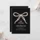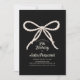 Elegant black and white invitation features large white pearl script bow on a black background. Calligraphy adds a special touch. All text is editable.