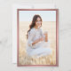 Partagez la joie d'un baccalauréat ou d'une collégiale et famille d'invitations et amis à célébrer avec élégante photo personnalisée burgundy et fausse rose invitation feuille d'or. Ce modèle téléchargeable est mis en place en tant que faire-part de remise de diplômes et d'invitation à la fête, et est simple à personnaliser avec n'importe quel libellé de votre choix, tels que les noms des parents, les distinctions ou récompenses diplômées, diplôme, citations inspirantes préférées, ou plans futurs et coordonnées. Le design marron rouge et rose présente une élégante bordure rayée, une calligraphie moderne et élégante, une typographie vintage classique et une photo préférée, telle qu'une photo de haut niveau ou une image de la cérémonie de début. Veuillez noter que l'or rose est imprimé en couleur sombre rose, et non métallique. Ces élégantes cartes de graduation imprimables sont une façon élégante de partager une fête spéciale avec votre famille et vos amis. Félicitations au diplômé !