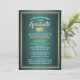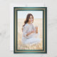 Famille Invitation et amis à une élégante fête de fin d'études secondaires ou collégiales avec ces invitations turquoises vert, blanc et or doux immétallique invitations. Photo et tout le texte sont simples à customiser. (CONSEIL EN MATIÈRE DE PLACEMENT D'IMAGE : Une façon simple de centrer une photo exactement comment vous voulez est de la rogner avant de la télécharger sur le site Zazzle.) Ce modèle d'invitation est formaté pour une fête de remise de diplômes, mais peut facilement être changé en une maison ouverte ou tout type d'événement. Si vous préférez simplement une carte de faire-part, il vous suffit de modifier le texte pour y inclure tous les détails de votre choix, tels que le nom des parents, les distinctions spéciales, le titre du diplôme, les plans et coordonnées futurs du diplômé, ou la citation inspirante préférée. Le design comprend un arrière - plan en acier inoxydable turquoise, un capuchon de graduation en fausse feuille d'or, une typographie moderne et élégante, une calligraphie manuscrite de style et une photo de votre choix, comme une image ou une photo de haut niveau de la cérémonie de début. Cette carte élégante est une façon chic de commencer votre fête spéciale. Félicitations au diplômé !