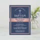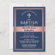 Famille Invitation et amis à un élégant baptême fille avec cette photo personnalisée 1 bleu marine, blanc et rose invitation. L'image et tout le texte sont simples à personnaliser. (CONSEIL EN MATIÈRE DE PLACEMENT D'IMAGE : Une façon simple de centrer une photo comme vous voulez est de la rogner avant de la télécharger sur le site Zazzle.) Le message peut être entièrement customisé pour inclure toute formulation concernant le service et la réception. Le design comprend une image de votre choix, un faux papier rose à la mode, une typographie d'inspiration art déco et une calligraphie de script moderne. Veuillez noter que l'or rose est imprimé en couleur, et non en métal réel.