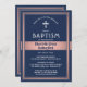 Invitation 1 Photo Girl Baptême Marine bleu et rose Rose Or
