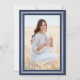 Que vos amis et votre famille pratiquent la distanciation sociale ou qu'ils vivent tout juste loin, connectez-vous avec eux en ligne avec une élégante fête virtuelle de remise des diplômes. (CONSEIL EN MATIÈRE DE PLACEMENT D'IMAGE : Une façon simple de centrer une photo exactement comment vous voulez est de la rogner avant de la télécharger sur le site Zazzle.) Cette invitation moderne bleu marine, blanc et argent permet de partager une photo et des invités invitations à un événement à longue distance par zoom vidéo conférence, en streaming sur Internet, ou un jeu vidéo de réalité virtuelle. Tout le texte est aussi simple à personnaliser pour un défilé de voiture en voiture ou en voiture. Si vous préférez simplement une carte de faire-part, il vous suffit de modifier le texte pour y inclure tous les détails de votre choix, tels que le nom des parents, les distinctions spéciales, le titre du diplôme, les plans d'avenir et les coordonnées du diplômé, ou la citation inspirante préférée. Le modèle peut également inclure un message personnel s'il s'agit d'un événement reprogrammé en raison d'une annulation ou d'un report. S'il n'y a pas de texte non voulu simplement le supprimer. Le design comprend un arrière - plan bleu marine, une feuille métallique imitation, une typographie blanche moderne, une calligraphie manuscrite et une photo de votre choix, telle qu'une image ou une photo de haut niveau de la cérémonie de début. Veuillez noter que l'argent est imprimé en couleur et non en papier. Cette carte élégante est une façon chic de commencer votre fête spéciale. Félicitations au diplômé !