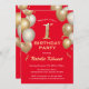 1er Anniversaire Ballons de Parties scintillant Noir et Rouge Invitation Anniversaire. Pour plus de personnalisation, cliquez sur le bouton "Customiser" et utilisez notre outil de conception pour modifier ce modèle.