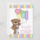 Invitation 1er anniversaire Bear Rainbow Stripes and Balloons