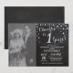 1er Anniversaire de Mariage avec photo personnalisée. Invitation Ardoise Noir et Argent. Fond Diamant Pailleté Ardoise Noir et Argent. Confettis Argent. Anniversaire Adulte. Fête d'anniversaire pour homme ou femme. Pour une personnalisation supplémentaire, veuillez cliquer sur le bouton "Personnaliser" et utiliser notre outil de conception pour modifier ce modèle.