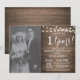 Invitation 1er Anniversaire de Mariage avec photo personnalisée. Fond en bois rustique. Lumières de corde. Noir et blanc. 1er, 2e, 3e, 4e, 5e, 10e, 15e, 20e, 25e, 30e, 35e, 40e, 45e, 50e, 55e, 60e, 65e, 70e, 75e, 80e, Toutes les années. Anniversaire adulte. Fête d'anniversaire pour femme ou homme. Pour une personnalisation supplémentaire, veuillez cliquer sur le bouton "Personnaliser" et utiliser notre outil de conception pour modifier ce modèle.