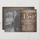 Invitation pour le 1er anniversaire de mariage avec photo personnalisée. Fond en bois rustique. Lumières de corde. Noir et blanc. 1er, 2e, 3e, 4e, 5e, 10e, 15e, 20e, 25e, 30e, 35e, 40e, 45e, 50e, 55e, 60e, 65e, 70e, 75e, 80e, Toutes les années. Anniversaire adulte. Fête d'anniversaire pour femme ou homme. Pour une personnalisation supplémentaire, veuillez cliquer sur le bouton "Personnaliser" et utiliser notre outil de conception pour modifier ce modèle.