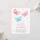 Invitation 1er Anniversaire Fleurs papillon Aquarelle rose