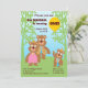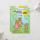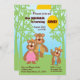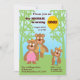 Les ours sauvages sont très chers aux enfants. Invitation votre famille et vos amis à votre fête d'anniversaire de la belle famille bo en utilisant cette invitation mignonne. Une famille d'ours habillée à la fête célèbre la première année de vie de leur petit ours dans la forêt ! Le petit tient un ballon. Tous les mots de cette invitation sont faciles à customiser avec vos données personnelles comme les noms, la date et l'heure; changer la police ou la couleur comme vous voulez. L'envers est orné de la silhouette de la forêt, d'un ballon jaune qui monte en l'air et de confettis colorés.