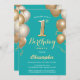 Invitation 1er Anniversaire Turquoise et Ballons d'or Confett