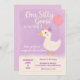 Célébrez le tout premier anniversaire de votre petite fille avec une petite bouffée de plaisir idiot ! Cette charmante invitation à l'anniversaire "One Silly Goose" présente un personnage d'oie ludique et un design ravissant sur le thème du violet, parfait pour une fête légère et mémorable. Avec des polices de caractères fantaisistes, des textures d’aquarelle douce et un joli jeu de mots qui ne manquera pas d’apporter des sourires, cette invitation donne le ton parfait pour une fête joyeuse. Idéal pour les petites filles en tournant un, cette carte est entièrement personnalisable avec vos détails de fête et est parfait pour l'impression.