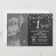 1er Anniversaire de Mariage avec photo personnalisée. Invitation Ardoise Noir et Argent. Fond Diamant Pailleté Ardoise Noir et Argent. Confettis Argent. Anniversaire Adulte. Fête d'anniversaire pour homme ou femme. Pour une personnalisation supplémentaire, veuillez cliquer sur le bouton "Personnaliser" et utiliser notre outil de conception pour modifier ce modèle.