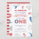 Une pizza Rouge Blanc et Bleu premier anniversaire design d'invitation pour un garçon ou une fille ou même jumeaux.