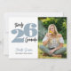 Cette invitation à la fête de remise de diplômes présente l'année de graduation en gros chiffres bleus poussiéreux et jumelé avec du texte de style manuscrit. La conception offre une photo verticale à l'avant et une photo horizontale à l'arrière. Le texte personnalisé, à l'arrière, vous permet d'ajouter les détails de votre invitation de parti.