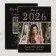 Annoncez votre diplômé de lycée en style avec cette carte de faire-part de graduation photo de style simple et élégant qui comprend deux photos senior de votre belle grade avec un classique noir et rose roux / or rose - peut être customisé. Le dos des cartes comprend une invitation à une fête de remise de diplômes pour célébrer l'occasion.