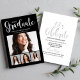 La carte de remise de diplômes et l'invitation de la fête présentent "Graduate" dans un script de calligraphie branché avec un collage photo moderne de quatre (4) photos de la grade. La carte recto verso comprend le libellé de la fête de remise de diplômes "Fêtons-nous" et des détails sur le dos. Design classique noir et blanc aux accents argentés.