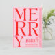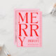 Carte de voeux de Noël 2025 moderne joyeux et rose rouge vif