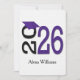 Année de graduation 2025 en texte violet et noir sur un arrière - plan blanc. Le nom et les informations de la partie arrière sont modifiables.