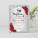 Invitation du 20e anniversaire. Design élégant en argent et en rouge. Comprend des bandes d'argent faux parties scintillant, des roses rouges police de caractères stylisés et des confettis. Parfait pour une fête d'anniversaire glam.