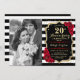 Design élégant en rouge et noir avec faux doré brillant. Comprend des rayures noires et blanches, une police script, des roses rouges et des confettis. Peut être personnalisé pour n'importe quelle année ! Envoyez-moi un message si vous avez besoin d'une personnalisation supplémentaire.