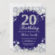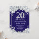 Invitation du 20e anniversaire. Arrière - plan en damier Diamond de la Marine Bleu et Argent Rhinestone. Élégant invitation du Bassin d'Anniversaire. Noir et Blanc. Anniversaire adulte. Les femmes, anniversaire. Hommes Anniversaire.