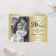 Invitation 20e anniversaire de mariage avec photo. Design élégant en or avec police de caractères script et confettis. Peut être personnalisé pour afficher n'importe quelle année de mariage. À 20 ans de mariage !