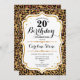 Invitation du 20e anniversaire. Elegantdesign en or blanc et faux parties scintillant. Comprend un poster de animal de guépard léopard, des caractères de script et des roses. Parfait pour une soirée d'anniversaire élégante. Peut être personnalisé dans n'importe quelle année! Message-moi si vous avez besoin d'une personnalisation plus poussée.