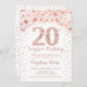 Invitation de fête du 20e anniversaire. Design élégant en faux rose parties scintillant or et blanc. Doté de roses, confettis et diamants roses roses de couleur pastel. Parfait pour une célébration de glamour.