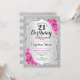 Invitation du 21e anniversaire. Design floral élégant en argent et rose. Comprend des bandes d'argent fausse parties scintillant, rose rose rose police de script et confetti. Parfait pour une fête d'anniversaire glam.